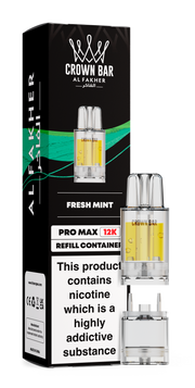 The Al Fakher Crown Bar Pro Max 12K Refill Replacement Pod is designed to prolong your vaping sessions, delivering up to 12,000 puffs. It includes a 2ml refillable pod and an 8ml large refill container for straightforward, spill-free e-liquid refills. Pre-filled with 20mg nicotine salt e-liquid and featuring a 1.0ohm mesh coil, it ensures smooth mouth-to-lung draws with rich flavour and vapour production. Fully compliant with TPD regulations and tailored for the Crown Bar Pro Max 12K Vape Kit, this pod serves as an effective, economical alternative to device replacement.